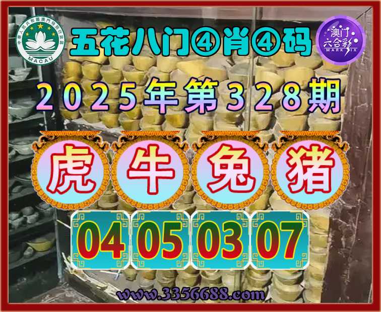 328期:《五花八门》 ⛩️④肖④码⛩️【虎牛猪】【04.05.03.07】开:兔03