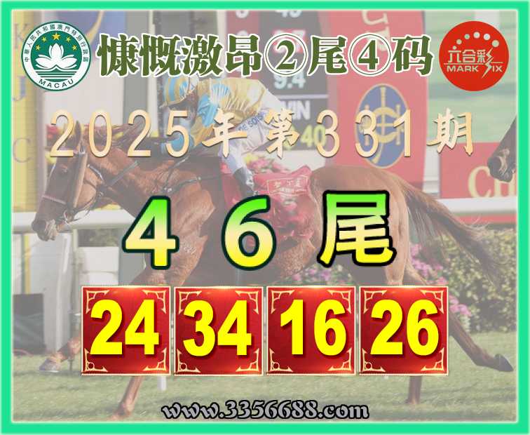 331期:『慷慨激昂』 👘②尾④码👘【46尾主:24.34.16.26】开:26