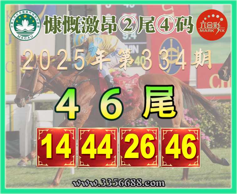 334期:『慷慨激昂』 👘②尾④码👘【46尾主:14.44.26.46】开:46
